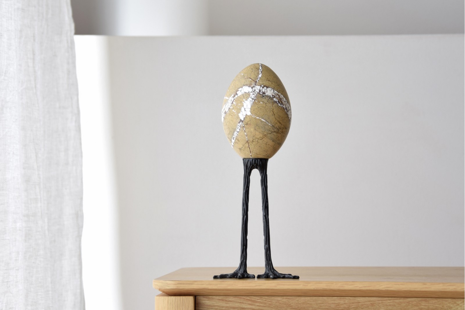 egg sculpture marble and metal