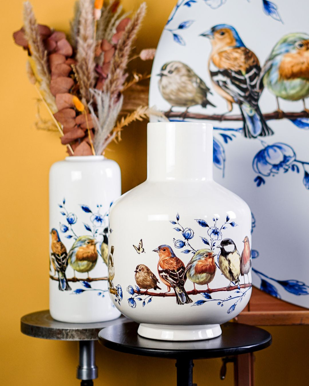 tall vase birds